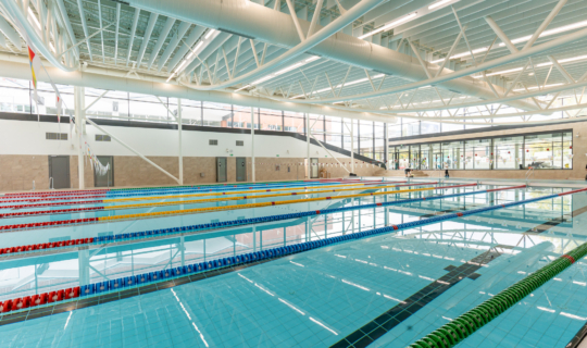 Big swimming pool with eight swimming lanes